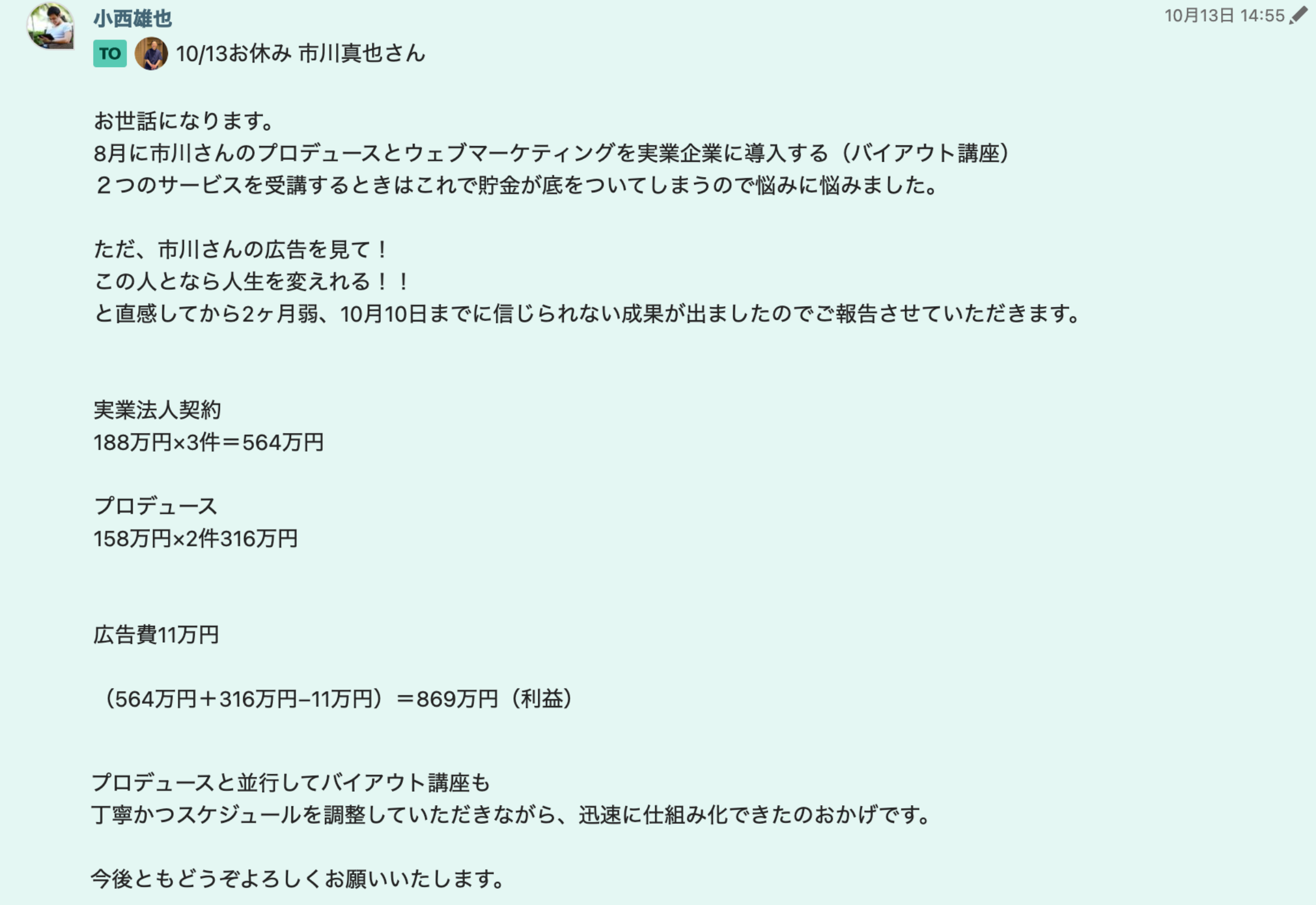 たった2ヶ月で度肝を抜かれるような売上を達成されました。
